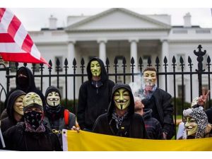 ABD’nin başkenti Washington’da bir araya gelen yüzlerce kişi, “Dünya Sivil İtaatsizlik Günü” olarak kutlanan 5 Kasım’da Guy Fawkes maskeleriyle yürüdü.