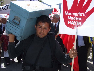 Marmaris, köylüsü, çevrecisi, arı üreticisi, turizmcisi ve yerel yöneticileriyle, ilçede maden aranıp, çıkarılmasına karşı durmakta kararlı. Enerji ve Tabii Kaynaklar Bakanlığı Maden Dairesi Genel Müdürlüğü'nce yenilenmesine rağmen, Osmaniye'de manganez madeni çıkarmak isteyen firmaya 'Gayri Sıhhi Çalışma Ruhsatı'nı vermeyen Turunç Belde Belediyesi'nin Başkanı Ali Fuat Fidan, Tehlike kapıda. Marmaris'i ya hep birlikte koruyup, kollayacağız ve bunun için mücadele edeceğiz, ya da batışını hep birlikte izleyeceğiz diyerek, herkesi maden arama ve işletme izinlerinin iptali için mücadeleye çağırdı.
