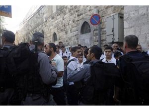 Kudüs'te bir grup Yahudi yerleşimci, İsrail güvenlik güçlerinin koruması altında Mescid-i Aksa'ya girdi.