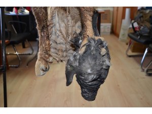 Burdur'da yaklaşık 4.5 kilogram ağırlığında ve 1 metre 70 santim kanat açıklığına sahip baykuş, pençesindeki güvercinle elektrik akımına kapılarak telef oldu.