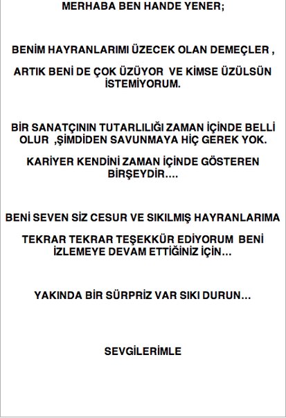 Hande Yener kendisine ait handeyener.com.tr web sitesinden hayranlarına bir açıklama yaptı.