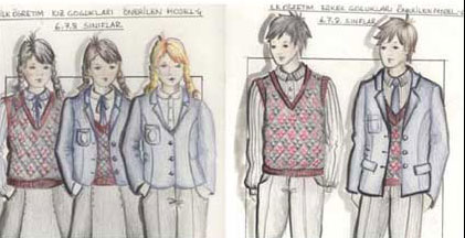 Kızlar baharda gömlek-pantolon-süveter, gömlek-jile, bluz-etek-yelek, bluz-jile; kışın gömlek-etek-süveter-ceket, gömlek-jile-ceket, gömlek-etek-yelek-ceket, triko kazak-jile-mont kombinasyonu yapabilecek.