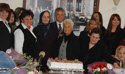 Plaket ve çiçeklerin sahipleri ile temsilcilerine verilmesinin ardından Başkan Acar ile kadınlar birlikte günün anısına yaş pasta kesip basın mensuplarına poz verdi. Daha sonra Acar, Yılın Başarlı Kadınlarıyla bir süre sohbet etti: